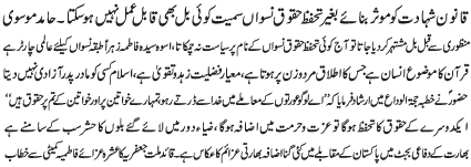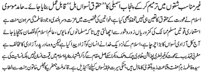 | ISLAMABAD, March 10: Undue points from the women rights bill passed in the Punjab Assembly should be excluded to make it applicable - Hamid Moosavi | |||