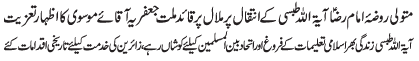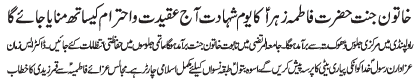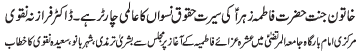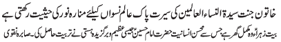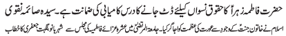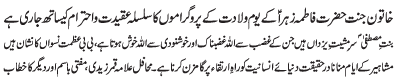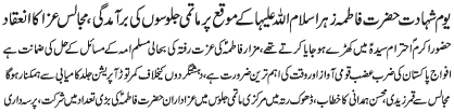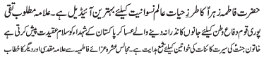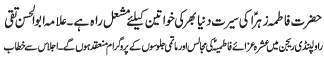 RAWALPINDI, March 11: The life of Hazrat Fatima Zahra (S.A) is ideal for women of world to follow - Matloob Taqi |