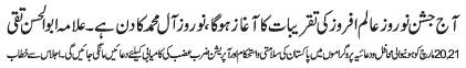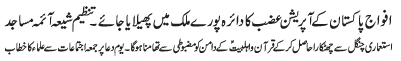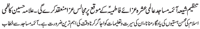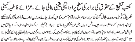 ISLAMABAD, March 15: Rights of Maktab e Tasheyyo on the basis of equality should be ensured - Azae Fatimiya Committee |
