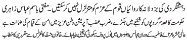 ISLAMABAD, March 9: The cowardice acts of terrorism cannot shake the confidence of the nation - Mufti Basim Zahiri |