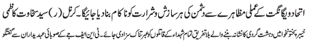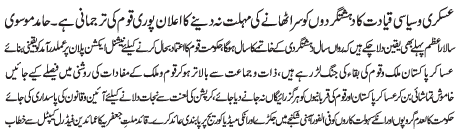 ISLAMABAD, March 21: Moosavi stressed upon the government to prove with their actions that they are on the same page with the armed forces |