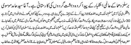 ISLAMABAD, March 4: The Islamic World will have to adopt the teachings of Mohammad and his family (PBUT) to get rid of colonialism |