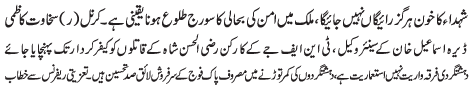 ISLAMABAD, March 26: The blood of martyrs will not go astray, the sun of peace will definitely rise in the country |