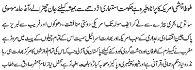 | ISLAMABAD, May 26: The Colonial Powers find excuses to target Pakistan - Moosavi | |||