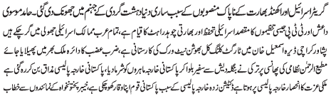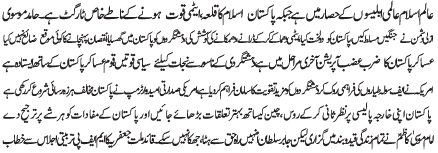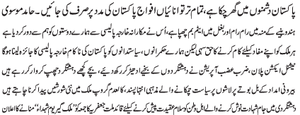ISLAMABAD, May 25: Pakistan is surrounded by enemies; all energies must be utilized to support Pakistan Armed Forces - Hamid Moosavi |