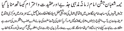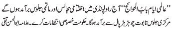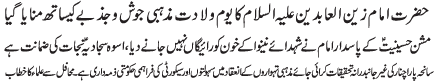RAWALPINDI, May 14: The birth anniversary of Imam Zainal Abideen (A.S.) was celebrated with great religious spirit |