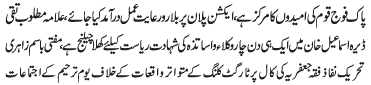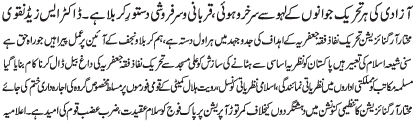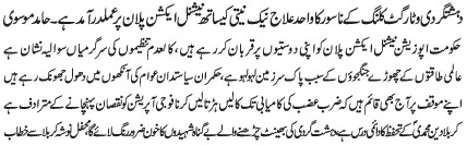 | ISLAMABAD, May 9: After killings of teachers and laweyrs, target killing of the social worker in Karachi is actually attack on Zarb e Azb Operation - Hamid Moosavi | |||