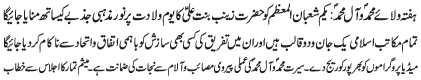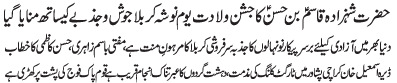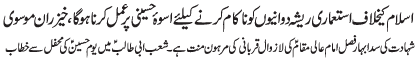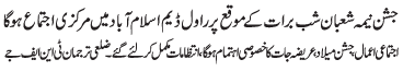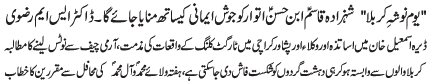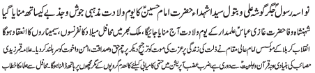 ISLAMABAD, May 11: Today the birth anniversary of the Grandson of the Holy Prophet, Imam Hussain (A.S.) will be celebrated |