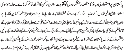 | ISLAMABAD, May 24: Colonial pressure on Pakistan is to provide strength to terrorists and to give upper hand to arch enemy - Hamid Moosavi | |||