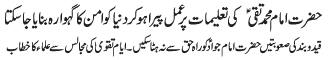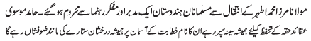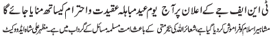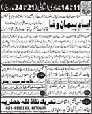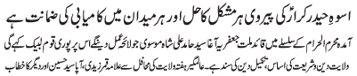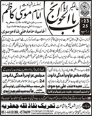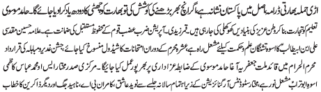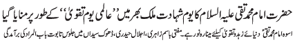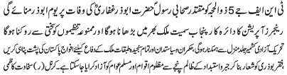 | ISLAMABAD, September 4: The TNFJ will observe Youme Abuzr on 5 Zilhajj to mark the death anniversary of the pious companion of the Holy Prophet Hazrat Abuzr (R.A.) | ||||