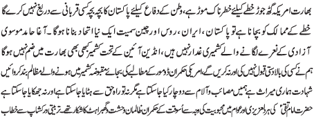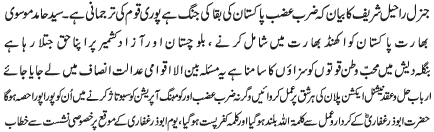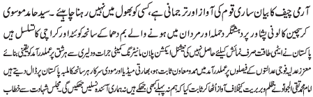 ISLAMABAD, September 3: The voice of the Army Chief is the voice of the nation nobody should have a doubt on this matter - Hamid Moosavi |