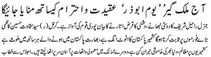 ISLAMABAD, September 8: Today Youme Abuzr will be observed throughout the country with respect and reverence |