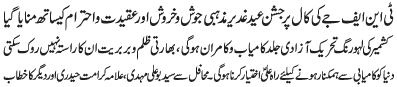 ISLAMABAD, September 22: On the call of the TNFJ Jashane Eid e Ghadeer was celebrated with great zeal |