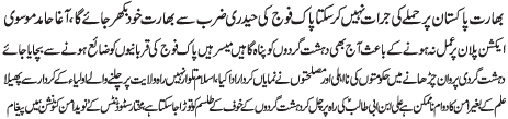 ISLAMABAD, September 26: India wouldn't dare to attack Pakistan, if she did it would be shattered into bits - Hamid Moosavi |