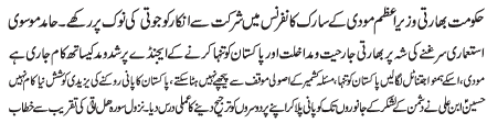 ISLAMABAD, September 29: The government shouldn't take any notice of refusal of Indian PM Moodi to attend SARK Conference - Hamid Moosavi |