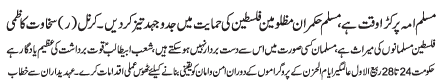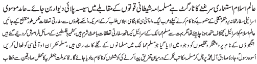 ISLAMABAD, December 12: The Muslim nation is facing difficult time; the Muslim rulers should speed up there efforts for the oppressed of Palestine - Sakhawat Kazmi |