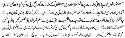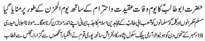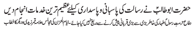 | RAWALPINDI, December 16: Hazrat Abu Talib (A.S) protected the Prophethood | |||