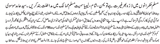 | ISLAMABAD, December 23: The leader of the colonial powers have weakened Muslim states economically, politically and in the matter of defence - Shuja'at Bukhari | |||