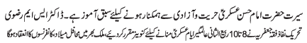 RAWALPINDI, December 27: The life of Imam Hassan Al Askari (A.S) is the best example to follow to attain freedom - Dr S M Rizvi |