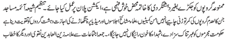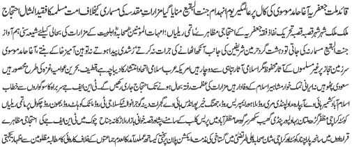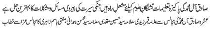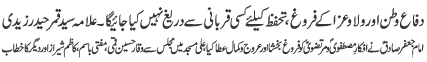 | RAWALPINDI, October 3: The Patron-in-Chief of Supreme Shia Ulema Board and chief of Tehreek Nafaz Fiqh-e-Jafariya Agha Syed Hamid Ali Shah Moosavi has announced a 17-point Code of Azadari for the oncoming month of Muharramul Haram | |||