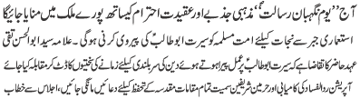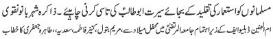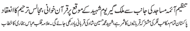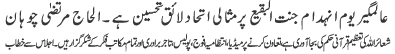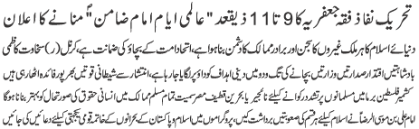 ISLAMABAD, July 31: TNFJ Announced the celebrations of Aalmi Ayyame Imam e Zamin from 9-11 Zeeqad |