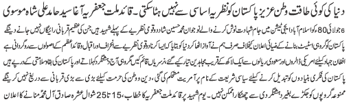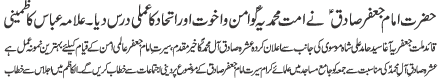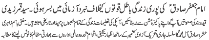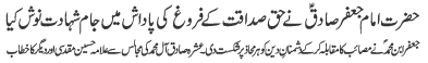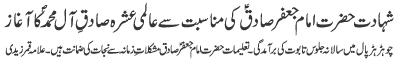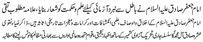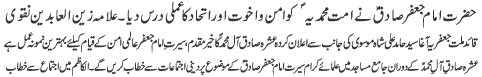 | ISLAMABAD, July 18: Imam Jafar Al Sadiq (A.S) elevated the flag of monotheism in the darkest era of oppression and brutality | |||