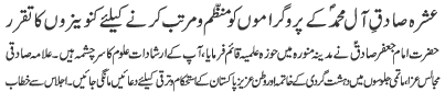 ISLAMABAD, July 8: Conveners has been nominated to oversee the programs of Ashrae Sadiq e Aale Mohammad (A.S) |