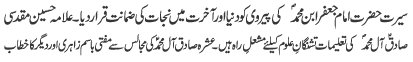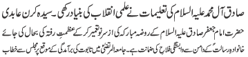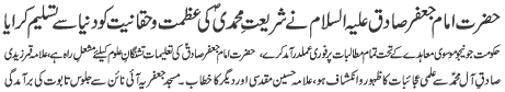ISLAMABAD, July 11: Hazrat Imam Jaffar Al Sadiq (A.S) proved to the world the truthfulness and greatness of Shariat e Mohammadi |