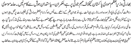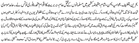 ISLAMABAD, July 20: The Kashmir movement is on its peak and soon the sun of freedom will rise; the blood of Kashmiri youth will not go astray - Mazhar Shah |