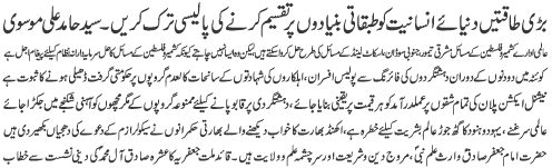 ISLAMABAD, July 17: Non Muslim powers got united internationally to cause harm to the interests of the Muslim nation - Hamid Moosavi |