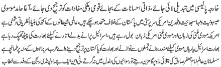 ISLAMABAD, July 16: Pakistan must change its foreign policies and national interests must be preferred over personal commitments and limited benefits in trading - Hamid Moosavi |