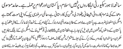 | ISLAMABAD, July 24: The stoppage of lethal American aid is an excellent opportunity to get rid of the chief of the colonial powers - Hamid Moosavi | |||