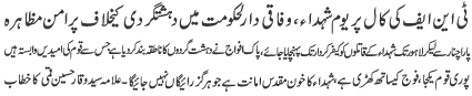 | ISLAMABAD, July 1: Sympathy expressed by Gen. Bajwa for Parachinar is appreciable; the government must accept all demands of the people of Parachinar so peace may be re-establish - Hamid Moosavi | |||