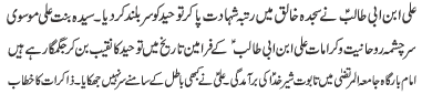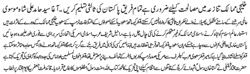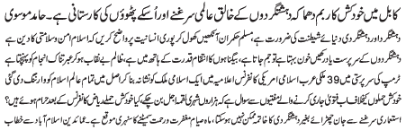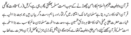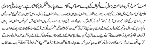 | ISLAMABAD, June 18: The Muslims suffering with anarchy should hold the Daman of Ali Ibne Abi Talib (A.S.) to come out of problems - Hamid Moosavi | |||