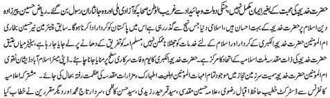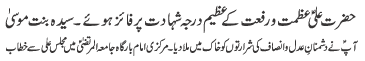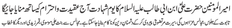 | ISLAMABAD, June 16: During Ayyam e Shahadat Imam Ali (A.S) power cuts must be stopped; security of Majalis and processions must be ensured - Sakhawat Kazmi | |||