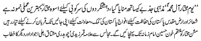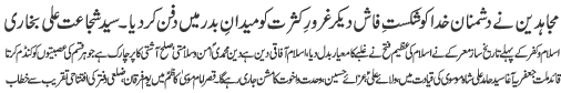 ISLAMABAD, June 14: Mujahideen defeated the enemy of Allah in Ghazwa e Badr - Shuja'at Bukhari |