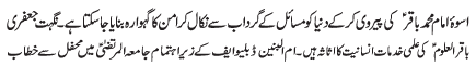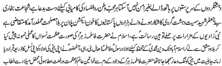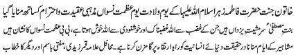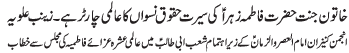 ISLAMABAD, March 2: The exemplary life of Hazrat Fatima Zahra (S.A.) guarantee the protection of women rights - Major (R) Baqir Bukhari |