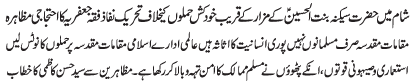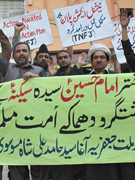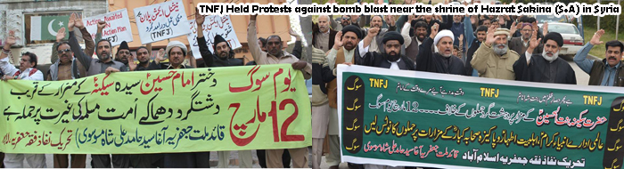 ISLAMABAD, March 12: TNFJ holding peaceful protest on 12 March against the bomb blast near the shrine of Hazrat Sakina Bintal Hussain (S.A.) |
