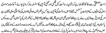 ISLAMABAD, March 1: Due to the conspiracies of enemies and self centred policies of Muslim, the nation is on the brink of disaster - Col (R) Sakhawat Kazmi |