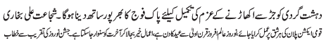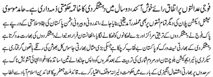 ISLAMABAD, March 11: The decision of Pak Armed Forces to expedite the Operation Radul Fasad and to ensure the country's defence is the voice of the whole nation - Mazhar Ali Shah Advocate |