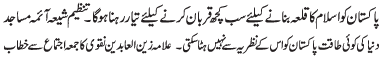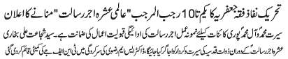 | ISLAMABAD, March 29: The TNFJ announced th celebration of Ashrae Ajr e Rasalat from 1 - 10 Rajab al Murajab | |||