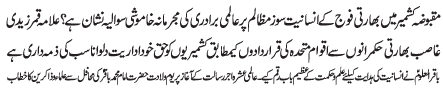 | ISLAMABAD, March 31: The criminal silence of the world over the brutality committed on Kashmiriis by Indian Army poses grave question | |||