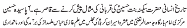 ISLAMABAD, November 23: The remembrance of Imam Hussain (A.S) provides strength to oppressed to fight back oppressors - Nuzhat Naqvi |