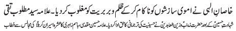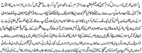 | ISLAMABAD, November 12: Imam Hussain (A.S) is the point of unity for whole of humanity and following Hussainiat guarantees salvation | |||