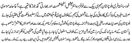 ISLAMABAD, November 20: The rulers and the politicians should form collective policy against international conspiracies regarding Balouchistan |