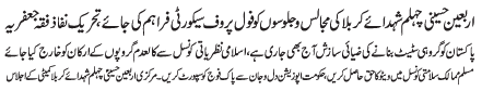 ISLAMABAD, November 8: The fool proof security must be provided to the Majalis and processions of Arbaeen e Hussaini Chehlum Shuhadae Karbala - TNFJ |