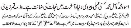RAWALPINDI, November 21: The Muslim rulers should take lesson from the lives of the Holy Prophet and Imam Hassan (A.S) - Qamar Zaidi |
