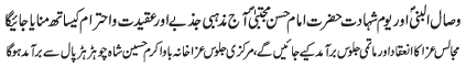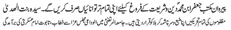 | ISLAMABAD, November 11: TNFJ has announced the observation of Hafta e Azmat e Mustafa O Mujtaba ( A.S) from 23 - 29 Safar al Muzzafar | |||