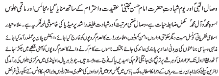 RAWALPINDI, November 28: The martyrdom of Imam Hassan al Askari (A.S) was commemorated with great respect |