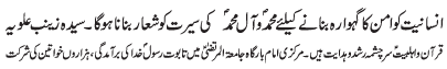 ISLAMABAD, November 15: The love towards the Holy Prophet (SAWW) guarantees salvation in this world and the hereafter |